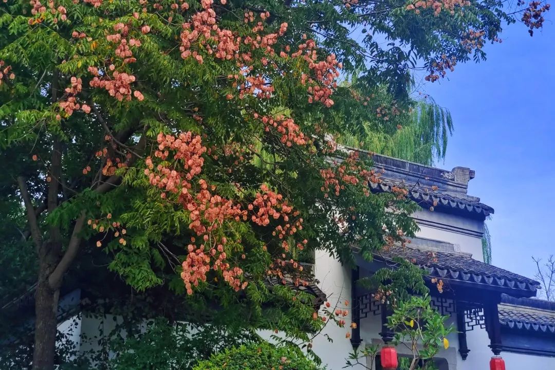 红黄相间的栾树蒴果,好似一串串小灯笼挂在枝头。诠释着栾树花语“奇妙、震撼、绚烂的一生”,一棵树的颜色就是一整个秋天。